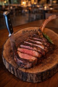New York bañado en salsa gravy acompañado de camarones al ajillo y una cama de pure de ...